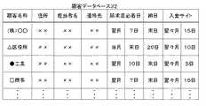 第3の特徴に係る発明によれば、入金予定日情報が売上計上日情報と顧客情報とに基づいて決定されるため、顧客に特有の締日や入金サイトに基づいて、各工事の項目ごとに入金予定日を決定することが可能となり、お金の出入りをより詳細に把握することが可能なシステムを提供できる。 According to the invention according to the third aspect, the scheduled payment date information is determined based on the sales accounting date information and the customer information. Therefore, each construction item is determined based on a customer-specific closing date and a payment site. , It is possible to determine the expected date of deposit, and it is possible to provide a system capable of grasping the incoming and outgoing of money in more detail.