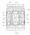 また、このように、中央面145の位置を最もボトル水平方向内側に設けるため、減圧時に陽圧による膨出前の元の形状に戻りやすくなる。また、減圧時において、ボトル水平方向外側に張り出させた膨部142がボトル内側に引き込まれることにより、当該膨部142だけでも減圧吸収に役立つ。  In addition, since the position of the