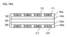 また、図9bに示すように、第1センサパターン110の間には第1ダミーパターン111を交差配置することができ、第2センサパターン210の間にはダミーパターンを配置しないこともできる。  In addition, as shown in FIG. 9B, the