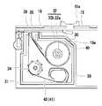 すなわち、ローラ34の手前側には、中心側に向かって突出している部分を有する円形状の凹部38aが形成されている嵌合部38が設けられている。そして、センサカートリッジ30のケース31の、当該嵌合部38と対向する部分には、開口部が設けられている。  That is, on the front side of the