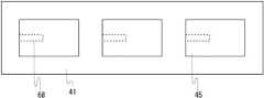 センサ体40(図3)は、複数の小型なフィルム状センサ45が、台紙フィルム41上に接着強度が比較的に弱い材料にて台紙フィルム41の長さ方向に等間隔に接着されているテープ状部材である。センサ体40の、フィルム状センサ45が配置されていない部分には、フィルム状センサ45の配置間隔(隣接する各2つのフィルム状センサ45の中心間の間隔;以下、センサ配置間隔と表記する)と同間隔で、角丸長方形状の孔42が設けられている。  The sensor body 40 (FIG. 3) is a tape in which a plurality of small film-shaped