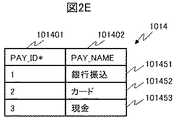図2Eに示したテーブル1014はカラムとして、PAY_ID101401と、PAY_NAME101402とを有する。これらのカラムの中で、PAY_ID101401は主キーである。また、テーブル1014はレコード101451〜101453を有する。  The table 1014 illustrated in FIG. 2E has