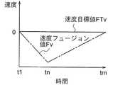 時刻tn以降、時刻tmまでの期間、物体認識装置3は、時刻tnと同様の処理を行う。この期間に上述の特殊追尾処理が繰り返し行われることで、図10〜図12に示すように、調整用加速度を「0.2G」として、フュージョンデータFが等加速度運動に従って時間的に遷移する。これにより、位置フュージョン値Fpが位置目標値FTpに近づくとともに、速度フュージョン値Fvが速度目標値FTvに近づく。  From the time tn to the time tm, the