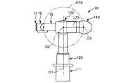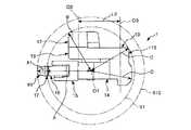 図2に示すように、第1アーム12は、屈曲した形状をなす。また、図4に示すように、第1アーム12は、後述する第1回動軸O1に対して傾斜した部分を有している。  As shown in FIG. 2, the