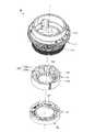 下側細粉砕リング24は、原料吐出プレート23上にねじ止めされ、上側細粉砕リング13と協働して、粗粉砕されたコーヒー豆を、細粉砕するためのものである。この下側細粉砕リング24は、例えばステンレス等の所定の金属から成り、上側細粉砕リング13と上下対称に形成されている。また下側細粉砕リング24は、内側から外側に向かって厚さが次第に大きくなるように形成されており、傾斜した上面の粉砕面24aには、各々が径方向に延びるとともに、周方向に沿って配置された多数の刃241が形成されている。  The lower
