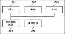 図2に、端末装置及びネットワーク装置のハードウェア構成例を示す。端末装置及びネットワーク装置は、一例において、図2に示すようなハードウェア構成を有し、例えば、CPU201、ROM202、RAM203、外部記憶装置204、及び通信回路205を有する。端末装置及びネットワーク装置では、例えばROM202、RAM203及び外部記憶装置204のいずれかに記録された、上述のような端末装置及びネットワーク装置の各機能を実現するプログラムがCPU201により実行される。(Hardware configuration)