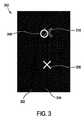 図3は、2つの線形画像特徴302及び304を含む別の2次元ピクセルグリッド300を示す。この実施形態では、2つのマーカー位置データ306及び308が受け取られている。画像処理装置400は、両方のマーカー位置について、対応するサーチ領域を決定し、それぞれのサーチ領域内のすべてのピクセルについて加重対称性値を決定する。マーカー位置306の場合、改良されたマーカー位置データは入力マーカー位置データと一致する。すなわち、マーカー位置データによって示されるピクセルは、そのサーチ領域内の全ピクセルのうち最も高い加重対称性値を有する。ユーザ入力位置308の場合、画像処理装置は、マーカー位置によって示されるピクセルの加重対称性値よりも高い加重対称性値を有するサーチ領域内のピクセルが存在すると判定することができた。マーカー位置データ308に対応するサーチ領域が複数の線形画像特徴の一部を含む実施形態では、同じ最高加重対称性値を有する複数のターゲットピクセルが特定され得る。この実施形態では、マーカー位置ユニットは、全てのターゲットピクセルとマーカー位置データとの間の距離指標を求め、距離指標の最小値を有するターゲットピクセルに対応する改良されたマーカー位置310を出力するように構成される。このようにして、画像処理装置は、入力マーカー位置データに対応しないピクセルを示す改良されたマーカー位置データを決定する。この実施形態では、2次元ピクセルグリッド300は、マーカー位置306及び308、並びに改良されたマーカー位置310を示すマーカーとともに表示される。この具体的実施形態では、異なるマーカーデータグラフィカル表現(異なる色及び/又は形状)を使用することによって、改良されたマーカー位置データ(例えば、マーカー位置データ310に改良されたマーカー位置データ308)と、改良されていないマーカー位置データ(例えば、マーカー位置306)とが区別されている。  FIG. 3 shows another two-