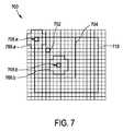 図7は、本発明の一実施形態に係る、画像処理中の2座標ピクセルグリッド700を示す。ピクセル702を示すマーカー位置データが、マーカー入力インターフェイスによって受け取られている。マーカー位置改良ユニットは、この実施形態ではピクセル702を中心位置として有さないサーチ領域704を決定する。計算領域のために使用されるピクセル窓は、この実施形態では5ピクセルの長さを有し、ピクセルグリッドの2つの座標方向のそれぞれに3つの5ピクセルシーケンスを含む。サーチ領域704内の例示的なピクセル706.aについて、計算領域として領域708.aが決定される。サーチ領域704内の第2の例示的なピクセル706.bについて、計算領域として領域708.bが決定される。一部の実施形態では、受け取られたマーカー位置データが選択可能な領域710の外側に位置するピクセルを示す場合、マーカー位置改良ユニットはマーカー位置データの位置を改良することができず、一部の実施形態では、好適にユーザに知らせる。  FIG. 7 illustrates a two coordinate