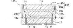 そして、蛍光体層26に使用される波長変換物質(蛍光体)としては、前記したもの以外でも、当該分野で公知のものを使用することができる。さらに、蛍光体層26は、一層のみを設けることだけではなく、複数の層として設けることとしてもよい。そして、蛍光体層は、複数の層として設ける場合には、蛍光体層ごとに波長変換物質を変えて設けるようにしてもよい。Further, although the