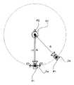 図10はスライド操作中における仮想カメラCaの向き及び位置の水平方向における変更を示す図である。仮想カメラCaの位置は、プレイヤキャラクタG1の代表点P2を含む水平面において、当該P2を中心とする所定半径r1の円上に設定される。すなわち、仮想カメラCaの水平方向についての移動可能範囲(仮想カメラ移動可能範囲)はこの円上である。そして、図1の右方向(X軸正方向)にスライド操作があったときには、照準G3がX軸方向の右側境界に至った後、仮想カメラCaの位置が現在位置からC1の方向にスライド量a2xに応じて移動する。また、図1の左方向(X軸負方向)にスライド操作があったときには、照準G3がX軸方向の左側境界に至った後、仮想カメラCaの位置がデフォルト位置からC2の方向にスライド量a2xに応じて移動する。 FIG. 10 is a diagram showing a change in the direction and position of the virtual camera Ca in the horizontal direction during the slide operation. The position of the virtual camera Ca is set on a circle having a predetermined radius r1 centered on the P2 in the horizontal plane including the representative point P2 of the player character G1. That is, the movable range of the virtual camera Ca in the horizontal direction (virtual camera movable range) is on this circle. Then, when the slide operation is performed in the right direction (X-axis positive direction) in FIG. 1, after the sight G3 reaches the right boundary in the X-axis direction, the position of the virtual camera Ca slides from the current position in the direction C1. Move according to a2x. Further, when there is a slide operation in the left direction (negative X-axis direction) in FIG. 1, after the aim G3 reaches the left boundary in the X-axis direction, the position of the virtual camera Ca slides from the default position in the direction C2. Move according to a2x.