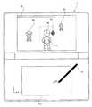 下側ハウジング11には、下側LCD(Liquid  Crystal  Display:液晶表示装置)12が設けられる。下側LCD12は横長形状であり、長辺方向が下側ハウジング11の長辺方向に一致するように配置される。なお、本実施形態では、ゲーム装置1に内蔵されている表示装置としてLCDを用いているが、例えばEL(Electro  Luminescence:電界発光)を利用した表示装置等、他の任意の表示装置を利用してもよい。また、ゲーム装置1は、任意の解像度の表示装置を利用することができる。なお、詳細は後述するが、下側LCD12は、主に、内側カメラ23または外側カメラ25で撮影されている画像をリアルタイムに表示するために用いられる。  The lower housing 11 is provided with a lower LCD (Liquid Crystal Display) 12. The