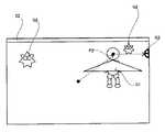 、プレイヤが照準の位置を素早く的確に移動させることが可能になる。The program of the tenth invention causes a computer to further function as player object placement means. Here, the player object placement means places the player object in the virtual space. Further, the player object placement means automatically moves the player object along a path provided in the virtual space. According to this configuration, since the player object automatically moves, the predictability of the player for the content of the displayed virtual space is reduced. For example, there is a case where a shooting target unexpected by the player approaches the player object at an unexpected speed. Therefore, it is necessary to move the aim quickly and accurately. According to the program of the eighth invention, the aiming position can be moved by an intuitive and simple operation without changing the imaging direction and/or position of the virtual camera. Even in a situation in which the player's predictability for the contents of the space is low, the player can move the aiming position quickly and accurately.