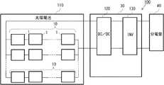 また、本発明においては、前記電力系統と接続された前記インバータの出力端における交流電圧を測定する交流電圧計測回路を備え、前記太陽電池の出力が所定値未満の場合に、前記インバータ及び前記交流電圧計測回路を介して外部の電力系統の電圧を前記太陽電池に印加してもよい。In the present invention, comprises an AC voltage measurement circuit for measuring anAC voltage at the output terminal of the inverter the connected to the electric power system, when the output of the solar cell is less than a predetermined value, the inverter and the AC You may apply the voltage of an external electric power system to the said solar cell via a voltage measurement circuit.