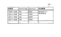「時間帯」は、イベントXのスケジュールに合わせて設定された時間帯を示す。「コンテンツID」、「コンテンツ」、「有効期限」については、これまでと同様であるため説明を省略する。 “Time zone” indicates a time zone set in accordance with the schedule of the event X. The “content ID”, the “content”, and the “expiration date” are the same as before, and thus the description thereof is omitted.