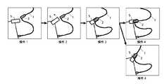 (2)また、内視鏡操作部2を鉛直に保持させる場合、機種によっては、鉗子口部(内視鏡操作部下端の突起)が、スコープハンガー先端部5を上下に通るようにしなければならないので、そのような形状を追加した(図3、手順2)。