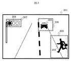 図3は、本発明の撮像装置の一実施例で撮像される撮像画像と領域制御の一例を示す図である。同図中201は、例えば撮像部101で撮像され、補正部103で補正された撮像画像のうち、前述のように撮像部102で撮像された画像と共通して撮像されている領域を示す。  FIG. 3 is a diagram showing an example of a captured image captured by an embodiment of the image capturing apparatus of the present invention and area control. In the figure,