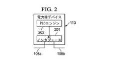 PLCエンジン202は、特定の周波数帯を用いてACインタフェース201を介してワイヤ108a及び/又は108bでPLC信号を伝送及び/又は受信するように構成され得る。幾つかの実施例では、PLCエンジン202はOFDM信号を伝送するように構成され得るが、他のタイプの変調方式も用いられ得る。したがって、PLCエンジン202は、計測又は監視回路(図示せず)を含み得るか或いはそれらと通信するように構成され得、計測又は監視回路は、ワイヤ108、108a、及び/又は108bを介して或るデバイス又は機器の電力消費特徴を測定するように構成される。PLCエンジン202は、かかる電力消費情報を受信し、これを1つ又は複数のPLC信号として符号化し、これをさらなる処理のためにワイヤ108、108a、及び/又は108bを介してより高レベルのPLCデバイス(例えば、PLCゲートウェイ112n、データアグリゲータ114など)に伝送し得る。反対に、PLCエンジン202は、例えば、動作する特定の周波数帯をPLCエンジン202が選択できるようにするため、PLC信号内に符号化されたこのようなより高レベルのPLCデバイスからの命令及び/又は他の情報を受信し得る。
