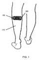 TENSデバイスがユーザのふくらはぎ上部において適所にしっかりと取り付けられたとき、TENSデバイス100の加速度計152(図4および図6)の位置および方向がユーザの下肢に対して固定される。TENSデバイス100と下肢140との間がしっかりと機械的に結合されると、ユーザの下肢の動きが加速度計152によって正確に測定され得る。そのような緊密な機械的結合は、好ましくは前述のストラップ110によって確立される。あるいは、緊密な機械的結合は、他の手段(たとえばTENSデバイスを包むフレキシブルバンド)によって確立されてもよい。必要に応じて、TENSデバイス100とふくらはぎ上部140との間で緊密な機械的結合が確立されたことを確認するために、ストラップ110上に張力計109(図1)が設けられてよい。  When the TENS device is firmly attached in place on the upper part of the user's calf, the position and orientation of the accelerometer 152 (FIGS. 4 and 6) of the