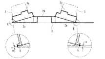 本実施形態に係る本体部2は、図7〜13に示すように、矩形状の樹脂成形部から成り、その両側位置に形成されて本体部2の底面(所定位置Baに対する取り付け面)に対して所定角度α傾斜した傾斜面2aと、本体部2の中央位置であって左右の傾斜面2aの間に位置する中央部2bとを有して構成されている。すなわち、本体部2の中央に中央部2bが形成されるとともに、その中央部2bから左右方向に向かって傾斜角度αの傾斜面2aがそれぞれ形成されており、各傾斜面2a上に複数(本実施形態においては4つ)の保持部3が取り付けられている。  As shown in FIGS. 7 to 13, the