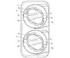 しかるに、取付部材1が位置決めピンgにて位置決めされつつ係止孔3b(被係止部)が係止部材Aの係止爪Aaにて係止(図15(a)参照)されると、図5(a)に示すように、保持部3で保持されたポンプチューブCは、その基端部Ca及び先端部Cbが各しごき型ポンプPにおける上ガイドピンa1、b1より上部に位置することとなる。このとき、各しごき型ポンプPのロータRは、所定位置(図2〜4参照)にて停止状態とされている。かかる係止状態から係止部材Aを所定位置Baに対して引っ込む方向(取付部材1を所定位置Baに近接させる方向)に移動すると、図5(b)に示すように、ポンプチューブCの基端部Caが上ガイドピンb1と下ガイドピンb2の間に位置するとともに、当該ポンプチューブCの先端部Cbが上ガイドピンa1の上部に位置することとなる。  However, when the mounting