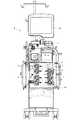 本実施形態に適用される血液浄化装置Bは、図1〜3に示すように、血液浄化治療に関わる情報等が表示可能なモニタMと、血液ポンプN等を有する血液透析治療の監視装置から成り、血液ポンプNを駆動させることにより血液回路にて患者の血液を体外循環させつつ血液浄化器(ダイアライザ)にて血液浄化治療を行うよう構成されている。本実施形態に係る血液浄化装置Bは、正面側に複数(本実施形態においては7個)のしごき型ポンプPを具備しており、血液浄化治療時に補液や排液を送液し得るようになっている。 As shown in FIGS. 1 to 3, the blood purification device B applied to the present embodiment is derived from a monitor M capable of displaying information related to blood purification treatment and a monitoring device for hemodiafiltration treatment having a blood pump N or the like. By driving the blood pump N, the blood of the patient is circulated extracorporeally in the blood circuit, and the blood purification treatment is performed by the blood purifier (dialyzer). The blood purification device B according to the present embodiment is provided with a plurality of (7 in the present embodiment) ironing type pumps P on the front side so that replacement fluid and drainage can be sent during blood purification treatment. It has become.