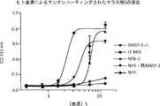 別の局面において、本発明は、MASP-2(SEQ ID NO:5、完全長)の一部に結合しかつMASP-3(SEQ ID NO:8)の一部にも結合するMASP-3阻害物質と、薬学的担体とを含む薬学的組成物を提供する。 In another aspect, the invention is a MASP-3 inhibition that binds part of MASP-2 (SEQ ID NO: 5, full length) and also part of MASP-3 (SEQ ID NO: 8). A pharmaceutical composition comprising a substance and a pharmaceutical carrier is provided.