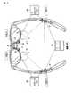 図2に示すように、一方のテンプル、例えば右テンプル18のフレーム12に近い部分に眼電位の検出のための処理部30が内蔵あるいは外付けされている。他方のテンプル、例えば左テンプル20のフレーム12に近い部分に処理部30のためのバッテリ34が内蔵あるいは外付けされている。処理部30は単に眼電位検出だけではなく、AR表示が可能なメガネ型ウェアラブル装置においては、表示制御も行ってもよい。処理部30はメガネに内蔵するのではなく、メガネの外部に設け、無線又はワイヤでメガネと処理部30とを接続してもよい。その場合、バッテリ34は処理部30に内蔵してメガネの外部に設けることができる。また、処理部30の機能を2つに分けて、電極からの信号をセンスする第1処理部のみメガネに設け、センス信号から眼電位を検出したり、検出結果に応じて制御する第2処理部をメガネの外部に設けてもよい。スマートフォン等の携帯端末を第2処理部として使用することができる。第2処理部はメガネに直接接続される携帯端末等に限らず、ネットワークを介して接続されるサーバ等も含む。[EOG signal]
