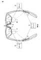 図6の変形例でも、左右一体型のV字若しくはU字型のノーズパッド54が設けられる。ノーズパッド52は下向きに広がっているが、ノーズパッド54は手前側に広がっている点が異なる。ノーズパッド54の右側に右ノーズパッド電極42が設けられ、左側に左ノーズパッド電極44が設けられ、中央に中性電極46が設けられる。  Also in the modified example of FIG. 6, the left and right integrated V-shaped or U-shaped nose pad 54 is provided. The nose pad 52 extends downward, except that the nose pad 54 extends toward the front side. A right