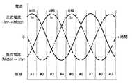 図3は、回転子が回転しているときに各相に流れる電流を示すグラフである。領域#1〜#6は、各時刻における電流の流れ方を説明するためのものである。