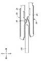 本発明による両面カードエッジコネクタは、一つの実施形態として、互いに対向する前記端子部材(20)の前記接点片(26)が、差込方向に直交する投影面で見て互いに重なる部分を含んでいる。 As one embodiment, the double-sided card edge connector according to the present invention includes a portion in which the contact pieces (26) of the terminal members (20) facing each other overlap each other when viewed on a projection plane orthogonal to the insertion direction. There is.
