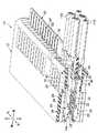 端子対Aでは、下側の端子部材20が上側の端子部材20より前側にオフセットされ、端子対Bでは、下側の端子部材20が上側の端子部材20より後側にオフセットされており、端子対Aと端子対Bとが、互いに同数(12個)だけ、一つずつ交互に配置(千鳥配置)されている。なお、図6は下側の端子部材20の配列位置を示している。  In terminal pair A, the