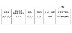 In the delivery management table T12, the requester, the mobile communication terminal of the notification destination, the article, the receiving place, the locker number, the delivery completion date and time, and the like are stored in association with each delivery request.