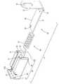 そして、斜め巻きコイルスプリング60は、図3及び図5に示すように、そのコイル軸Pが対向面31に沿って平行になる姿勢で配置されている。斜め巻きコイルスプリング60内には、コイル軸Pの軸線方向から見た単軸方向が上下方向となるように保持軸部55が挿入されており、この保持軸部55の一端は係止部43の後端面43Aに連結され、他端には抜け止め部35が配されていることで、保持軸部55から斜め巻きコイルスプリング60が抜け落ちないように保持されている。  Then, as shown in FIGS. 3 and 5, the diagonally wound