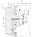 また、圧電素子43は、ポンプ部ダイアフラム422に配置され、ポンプ部ダイアフラム422を撓み変形させる第1圧電素子431と、バルブ部ダイアフラム423に配置され、バルブ部ダイアフラム423を撓み変形させる第2圧電素子432と、バルブ部ダイアフラム424に配置され、バルブ部ダイアフラム424を撓み変形させる第3圧電素子433とを有し、これら3つの圧電素子431、432、433は、それぞれ、後述する回路素子8の制御によって独立して駆動される。このように、圧電素子43をダイアフラム421に配置することで、圧電素子43の駆動力を効率的にダイアフラム421に伝達することができる。また、圧電素子43を駆動源とすることで、ポンプ40の小型化および軽量化を図ることができる。  Further, the