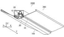 一対のレール部の各レール部32は、一対の延出領域33に対し、起立した状態で配置される。各レール部32は、長手方向Yに沿って、内部に溝34を有する。LED実装基板10は、例えば、各レール部32の溝34にスライド可能に挿入される。使用時において、図1に示すように、一対のレール部32は、本体ユニット200の凹部211に収容される。  Each