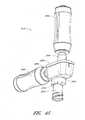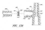 ターゲットコネクタ部338のさまざまな部分同士の間の特定の相互連結について以下に詳細に説明する。封止リング404は、ハウジング398の中間部分430の内側に配置できる。突出部472a,472bは、突出部472a,472bが貫通孔438a,438bと係合するようなサイズおよび配置とすることができる。したがって封止リング404は、封止リング404がチューブ446に対して軸線方向に回転または動作しないように、ハウジング398に固定可能である。  Specific interconnects between the various parts of the