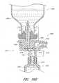 弾性部材402は、ハウジング398に対してバルブ部材400を付勢するよう機能する。第1のリング460は、リング460の表面が突出部454に当接するように、バルブ部材400の基部444の下部458に嵌合可能である。第2のリング462は、ハウジングの凹部424内に嵌合可能である。弾性部材464a,464bは、チャネル456a,456b内にそれぞれ配置可能であり、かつハウジング398の壁部426a,426bの間のギャップ428a,428bを通過可能である。  The