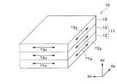 ここで説明する積層体10では、光透過性基材12の面内における最も屈折率が大きい方向である遅相軸方向dxにおける屈折率n1x、光透過性基材12の遅相軸方向dxと平行な方向における屈折率調整層の屈折率n2x、および、光透過性基材12の遅相軸方向dxと平行となる方向における機能層15の屈折率n3xが、