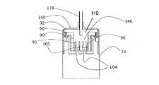 適合リング97は、アダプタ100と駆動ハンドル開口の間の正確な連結を確実にするための配向溝93を有する。図8bは、歯車ハウジングを取り入れるリング97と、それを配向するロッド89の切断図である。同じく示されているのは、歯車ハウジング110と、開口96に位置する連結歯車ヘッド105である。図8cは、近位リング90と、ハウジング110と、それらの部品間の関係を示すために、スリーブ99が取り外されたアダプタ100を示す。リング90の配向ロッド89は、図示されており、ハウジング110の溝144および141は、ロッド89を受け入れる。リング90は、溝93を使用することによって、駆動ハンドルに対する正確な配向に保持され、一方、配向ロッド89を用いて、歯車ハウジングを正確な配向に保持する。リング90の内径は、駆動ハンドル開口の内径よりも小さく、歯車ハウジングが駆動ハンドルの開口の潜在的に汚染される内側表面に接触するのを防止する。  The