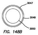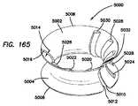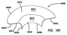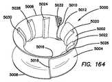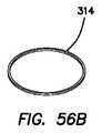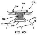リング512,516のうちの1つまたは2つ以上の断面は、円形であるのが良い。リング512,516は、可撓性を付与するために中空中央部を有する。一変形例では、リング512,516は、中空中央部を備えた楕円形、細長い形のまたは長円形の断面を有する。別の変形例では、リング512,516は、図55Aおよび図55Bに示されているように2つの連結された円形断面を有する8の字に似た形状を有し、その結果、小さな谷部が円相互間に生じる。一般的に言って、リング512,516の断面は、長さがその幅よりも大きい。この細長い断面により、リング512,516を外方にまたは内方にひっくり返して側壁520をリング512,516に巻き付けることによって各リング512,516をそれ自体回しまたはひっくり返すことができる。一変形例では、第1のリングまたは近位リング512だけが側壁520を丸く巻くよう構成されている。別の変形例では、リング512,516の両方は、シールド510を2方向に巻くよう構成され、即ち、第1のリング512か第2のリング516かのいずれかを切開創/体口に対して近位側に配置することができ、そして巻くことができる。リング512,516のうちの1つまたは2つ以上を圧縮することによってシールド510を挿入する。両方のリング512,516を圧縮して切開創を通って容易な挿入が可能な低プロフィール形態にするのが良いが、一般的に言って、圧縮される必要があるのは遠位リングだけであり、患者の体外に位置する近位リングは、圧縮される必要はない。また、遠位リングが患者の体内に位置しているときに側壁520を巻くよう構成する必要があるのは近位リングだけである。巻くために構成された1つまたは2つ以上のリング512,516を逆方向に巻くと側壁520の長さを増大させることができる。リング512,516のうちの一方を巻くと、側壁520の長さがリングに巻き取られ、それによりシールド510の長さが短くなる。リングの細長い断面は、有利には、側壁520をリングに丸く巻き付けたままにする。断面が円形である場合、リングは、現場で容易に巻かれ、それにより丸く巻かれた側壁520を広げることができる。リングのそれ自体の巻きにより、反対側のリングが上方に引かれてこのリングに近づく。  The cross section of one or more of the