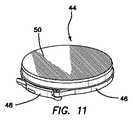 図11に示された一変形例では、ガード28は、キャップ44、例えばカリフォルニア州所在のアプライド・メディカル・リソーシーズ・コーポレイション(Applied Medical Resources Corporation)によって製造されたゲルシール(GELSEAL(登録商標))キャップに取り付けられるよう構成されている。キャップ44は、ガード28の近位端部に取り外し可能に連結可能な剛性リング46を有する。キャップ44は、キャップ44をガード28にロックするためのレバー48を有する。キャップ44は、このキャップを通って挿入された器械に密着して腹腔内の気腹状態を維持するよう構成されたゲルで構成可能な穿通可能部分50を有する。図12および図13は、ガード28に連結されたキャップ44を示している。想起ポート52がキャップ44に設けられるのが良い。キャップ44は、ガード28にスナップ装着され、そしてレバーロック48によってこれに密封的にロックされるのが良く、その結果、気腹状態が維持されるようになる。図14は、多数のポート54を備えたキャップ44を示している。各ポート54は、腹腔鏡器械を受け入れるよう構成されており、各ポートは、挿入状態の器械に密着するための1つまたは2つ以上の内部シールを有する。多ポート型キャップ44は、有利には、単一の部位を通る把持器、腹腔鏡および/または細切器の挿入を可能にする。  In one variant shown in FIG. 11, the