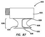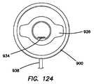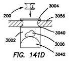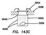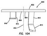 シールド200の別の利点は、このシールドが定着特徴部を有するということにある。シールド200は、有利には、C字形設計により創部および体口内にそれ自体定着するよう構成されている。定着特徴は、細切手技を劇的に容易にかつ迅速にする。というのは、これには、通常の手技中にシールド200を定位置に保持するための縫合糸または別の手が不要だからである。デュアルフランジ(頂部および底部222,224)がシールド200を定着させるために設けられ、それにより組織または腹壁をC字形の陥凹内に捕捉する。シールドは、創部内部中への位置決めのための遠位定着部材および創部開口部の外部への位置決めのための近位定着部材を有する。頂部フランジであるにせよ底部フランジであるにせよいずれにせよ単一のフランジもまた本発明の範囲に含まれる。さらに、頂部フランジ222および底部フランジ224は、それぞれ、頂端部212および底端部214の周囲全体に沿って延びているものとして示されているが、本発明にはこれには限定されず、頂部および底部フランジ222,224のうちの1つまたは2つ以上が周囲の少なくとも一部分の周りに延びても良い。かかる変形例では、フィンガー状の延長部が円周方向底部フランジ224に代えて形成されるのが良い。フィンガーは、容易な挿入を可能にするよう長手方向に沿って容易に撓むことができ、次に、腹壁または他の組織構造体もしくは体口の下の停留位置に半径方向外方にばね作用で動くことができる。また、頂部フランジ222は、図79に示されているように底部フランジ224よりも長い距離にわたって半径方向外方に延びるのが良く、また、その逆の関係がなりたっても良く、それにより広い切断板状表面を提供することができる。  Another advantage of the