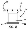 図15〜図17は、ガード28の別の変形例を示しており、この変形例は、ガード28の遠位端部のところにバルーン56を有している。バルーン56は、図15ではインフレート形態で示されている。インフレート形態では、バルーン56は、腹腔12内の腹壁10に固着するための幅広のフランジを形成するよう半径方向外方に延びており、それにより、ガード28が開口部14から偶発的に取り出されるのを困難にしている。図16は、バルーンをガード28が開口部14中に容易に挿入されたりこの開口部から容易に取り出されたりするデフレート形態で示している。図15〜図17のガード28もまた、キャップ44に連結されるのが良い。ガード28は、ポリカーボネートまたはこれに類似した材料を含む任意のポリマー材料で構成できる。  15 to 17 show another variant of the