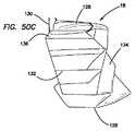図50A〜図50Dは、種々の実施形態による袋18を非潰れ状態または拡張もしくは部分拡張状態で示している。図示のように、袋18は、閉鎖端部126および少なくとも1つの開放端部128を有する。開放端部128は、種々の実施形態によれば、袋18の開放端部128を包囲するテザーまたは引きひも130を有する。テザー130を操作することにより袋18の開放端部128が閉じられる。図示の袋18は、袋18の閉鎖端部126と開放端部128との間で袋18の壁134に設けられた複数の予備成形折り目132または既定の変形パターンを有する。種々の実施形態による袋18は、袋18が潰れるとともに扁平な状態になる傾向を提供するよう形成され、このような潰れるとともに扁平になった状態では、開放端部128が上方に向きまたは体腔の開口部の方へ向くとともに最大幅、最大直径または最大開口部寸法を有しかつ閉鎖端部126が体腔の開口部から遠ざかる方向に向くとともに体腔に沿って扁平かつ安定した状態になるよう構成された状態で最小高さが提供される。種々の実施形態によれば、力が一方向に加えられると、袋18の壁134の高さは、袋18内の検体を捕捉しまたは包囲するよう増大する。折り目132または変形パターンは、袋18のかかる高さの増大が力を加えている方向に比例して起こるようにする。種々の実施形態によれば、重量、検体または逆の力が袋18に加えられて袋18の高さの増大、または特に袋18の比例的な高さの増大を更に助ける。  50A-50D show the
