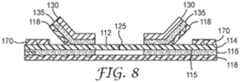 図4〜図7に示されるように、(例えば、矩形又は卵形の)窓部分が、支持材料内に切り出され、除去されることにより、支持枠(270、370)と、形状適合性ポリマーフィルム(214、314)の上面の一部分を露出させる窓とが作り出されている。支持枠(270、370)は、典型的には、連続的周辺部と、任意選択的に、形状適合性ポリマーフィルム(214、314)から支持枠を取り外すために、その支持材を容易に分離することが可能な場所を提供する、切れ目(250、350)とを備える。 As shown in FIGS. 4-7, the window portion (eg, rectangular or oval) is cut out and removed into the support material to form a support frame (270, 370) and a shape-compatible polymer. A window is created that exposes a portion of the top surface of the film (214,314). The support frame (270, 370) typically readily separates its support from the continuous periphery to optionally remove the support frame from the shape-compatible polymer film (214,314). It has cuts (250, 350) that provide a place where it can be done.