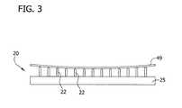 図3〜4を参照すると、基板ホルダー20は、半導体基板49を支持する、複数の、間隔をあけた細長いピン22を含んでも良い。ピン22は、載置ブロック25に取り付けられる。基板49に力が加えられ、基板を動かして(曲げて)、ピンに接触させても良い。ピン22、またはその上方部分は、曲げ位置(即ち加圧位置)で基板49に接触するために配置された支持面を選択的に規定しても良い。 With reference to FIGS. 3-4, the