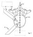 2つの椎骨の間の中間空間(椎間板腔)への本発明の装置によるアクセスは、後方側方からも、前方側方からも可能である。すなわち好ましくは、それぞれ−中央−矢状面に対して、あるいはこの面にある−水平−矢状軸に対してそれぞれ30゜から60゜、好ましくは40°から50°のアクセス角により、それぞれ側方後方ないし側方前方の上方からアクセスされる。これは図7に示されている。ここで後方側方からのアクセスは、好ましくは脊椎の棘突起の外側側面に沿って行うことができる。 Access by the device of the present invention to the intermediate space (disc cavity) between two vertebrae is possible from both posterior and anterior lateral. That is, preferably with access angles of 30 ° to 60 °, preferably 40 ° to 50 °, respectively-to the central-sagittal plane, or to the-horizontal-sagittal axis on this plane, respectively. It is accessed from above the rear or front of the side. This is shown in FIG. Here, posterior lateral access can preferably be along the lateral aspect of the spinous processes of the spine.