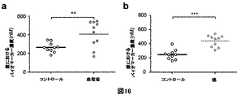 酵素感受性部位を最適化して、両方の高い触媒活性(または他の酵素活性)を特定された標的酵素に提供してもよいし、また検出のために最適化された検出可能マーカーを放出してもよい。患者の転帰は、個々の疾患の表現型に分子レベルで依存し、これはしばしば、酵素の発現において反映される。バイオインフォマティクスの最近の急増は、ヒト組織における遺伝子発現の複雑なパターンの探査が容易化した(Fodor, S.A. Massively parallel genomics. Science 277, 393-395 (1997))。発現プロファイリングによって生成される膨大なデータセットを用いて、腫瘍の分子診断が可能な高性能のコンピュータアルゴリズムが近年開発された(Khan J, Wei JS, Ringner M, Saal LH, Ladanyi M, Westermann F, et al. Classification and diagnostic prediction of cancers using gene expression profiling and artificial neural networks. Nat Med 2001;7:673-679.)。特定の疾患と関連する酵素および基質を同定するために、この情報にアクセスすることができる。この情報に基づいて、当業者は、バイオマーカーナノ粒子に組み込むべき適切な酵素または基質を同定することができる。表1は、(正常に対して増大したかまたは減少した)疾患と関連する酵素、およびいくつかの場合における特異的な基質の非限定的なリストを提供する。表2は、疾患またはその他状態と関連する基質の非限定的なリストを提供する。特定の疾患または状態に関連する多数の他の酵素/基質の組み合せが、当業者に知られており、本発明によれば有用である。 Enzyme-sensitive sites may be optimized to provide both high catalytic activity (or other enzyme activity) to the identified target enzyme, or release a detectable marker optimized for detection. May be good. Patient outcomes depend on the phenotype of the individual disease at the molecular level, which is often reflected in enzyme expression. The recent surge in bioinformatics has facilitated the exploration of complex patterns of gene expression in human tissues (Fodor, S.A. Massively parallel genomics. Science 277, 393-395 (1997)). High-performance computer algorithms have recently been developed that enable molecular diagnosis of tumors using the vast data sets generated by expression profiling (Khan J, Wei JS, Ringner M, Saal LH, Ladanyi M, Westermann F, et al. Classification and diagnostic prediction of cancers using gene expression profiling and artificial neural networks. Nat Med 2001; 7: 673-679.). This information can be accessed to identify enzymes and substrates associated with a particular disease. Based on this information, one of ordinary skill in the art can identify the appropriate enzyme or substrate to be incorporated into the biomarker nanoparticles. Table 1 provides a non-limiting list of enzymes associated with the disease (increased or decreased relative to normal), and in some cases specific substrates. Table 2 provides a non-limiting list of substrates associated with the disease or other condition. A number of other enzyme / substrate combinations associated with a particular disease or condition are known to those of skill in the art and are useful according to the present invention.