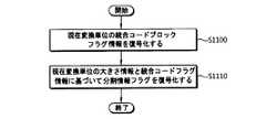 統合コードブロックフラグが0でなく、現在変換単位が下位変換単位に分割されない場合、分割情報フラグ値として0を有し、統合コードブロックフラグが0でなく、現在変換単位が下位変換単位に分割される場合、分割情報フラグ値として0でない値を有することができる。また、統合コードブロックフラグが0の場合、現在変換単位に対する分割情報を追加的に送信しないことによって不必要な分割情報を送信しない。統合コードブロックフラグと分割情報フラグは、結合されて結合符号化(Joint Coding)されることができる。統合コードブロックフラグと分割情報フラグが結合符号化される場合、ステップS300乃至ステップS320の手順が変わることができる。統合コードブロックフラグを適用する場合、符号化方法は、現在変換単位でcbf_y、cbf_u、cbf_v、split_flagのうち符号化しなければならない情報が何かを判断した後、必要な構文要素情報を所定のパターン情報で表現し、パターン情報に基づいて現在変換単位でそれぞれのコードブロックフラグ(cbf_y、cbf_u、cbf_v)と分割情報フラグ(split_transform_flag)を表現することができる。統合コードフラグを使用した符号化方法に対し、以下で詳細に説明する。 If the integrated code block flag is not 0 and the current conversion unit is not divided into lower conversion units, it has 0 as the division information flag value, the integrated code block flag is not 0, and the current conversion unit is divided into lower conversion units. If so, the division information flag value can have a non-zero value. Further, when the integrated code block flag is 0, unnecessary division information is not transmitted by not additionally transmitting the division information for the current conversion unit. The integrated code block flag and the division information flag can be combined and joint coded. When the integrated code block flag and the division information flag are combined and encoded, the procedure of steps S300 to S320 can be changed. When applying the integrated code block flag, the encoding method currently determines what information must be encoded among cbf_y, cbf_u, cbf_v, and sprit_flag in conversion units, and then determines the required syntax element information in a predetermined pattern. It can be expressed as information, and each code block flag (cbf_y, cbf_u, cbf_v) and division information flag (split_transform_flag) can be expressed in the current conversion unit based on the pattern information. The coding method using the integrated code flag will be described in detail below.