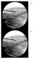 例示的な実施形態において、寸法付きグリッドは、放射線像形成ビームの伝達経路中に固定される(像増強装置に装着されるなど)。解剖学的像は、ひずみを含む場合または含まない場合があり得るが、像内に現れるひずみ量に関わらず、寸法付きグリッドは像内に現れるひずみ量に関連してひずみ、それにより、解剖学的像の様々な対象点上にひずみに適応された寸法付きグリッドが適切に重ね合わせられた状態で、ひずんだ解剖学的像における視覚による定量分析が可能になる。 In an exemplary embodiment, the dimensioned grid is anchored in the transmission path of the radiation image forming beam (for example, mounted on an image enhancer). The anatomical image may or may not contain strain, but regardless of the amount of strain that appears in the image, the dimensioned grid is strained in relation to the amount of strain that appears in the image, thereby anatomy. Visual quantitative analysis of distorted anatomical images is possible with strain-adapted dimensional grids properly superimposed on various target points of the target image.